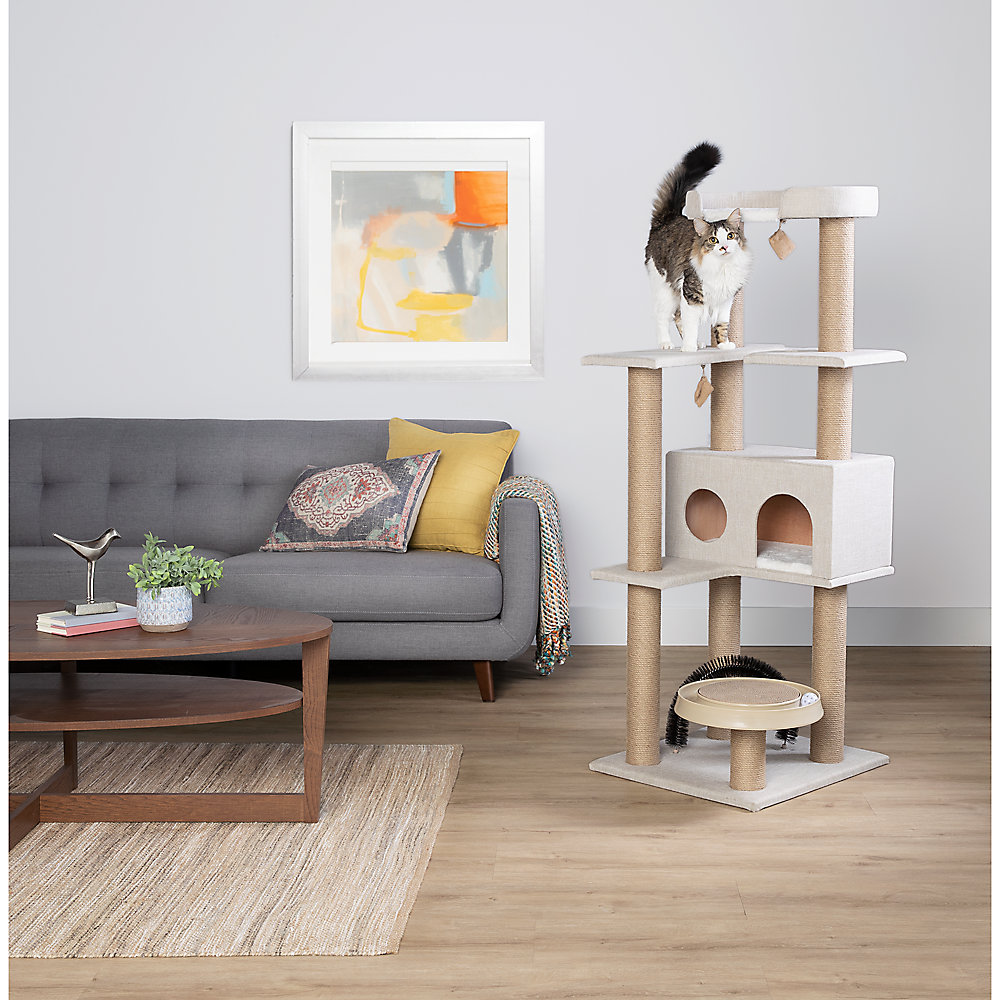 Your kitty is the ruler of their kingdom, so why not give them the castle they so rightfully deserve? This Whisker City Linen Playbox Cat Tower is a luxurious loft with so much to keep them busy, they may never leave! Scratching poles, toys, and perches give them options to climb, scratch, and play, or simply sleep the day away. Only at PetSmart.