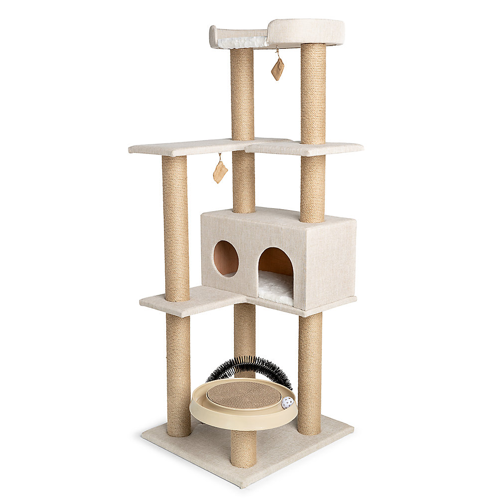 Includes: 1 Perch, 8 Jute Scratching Poles & Linen Hut